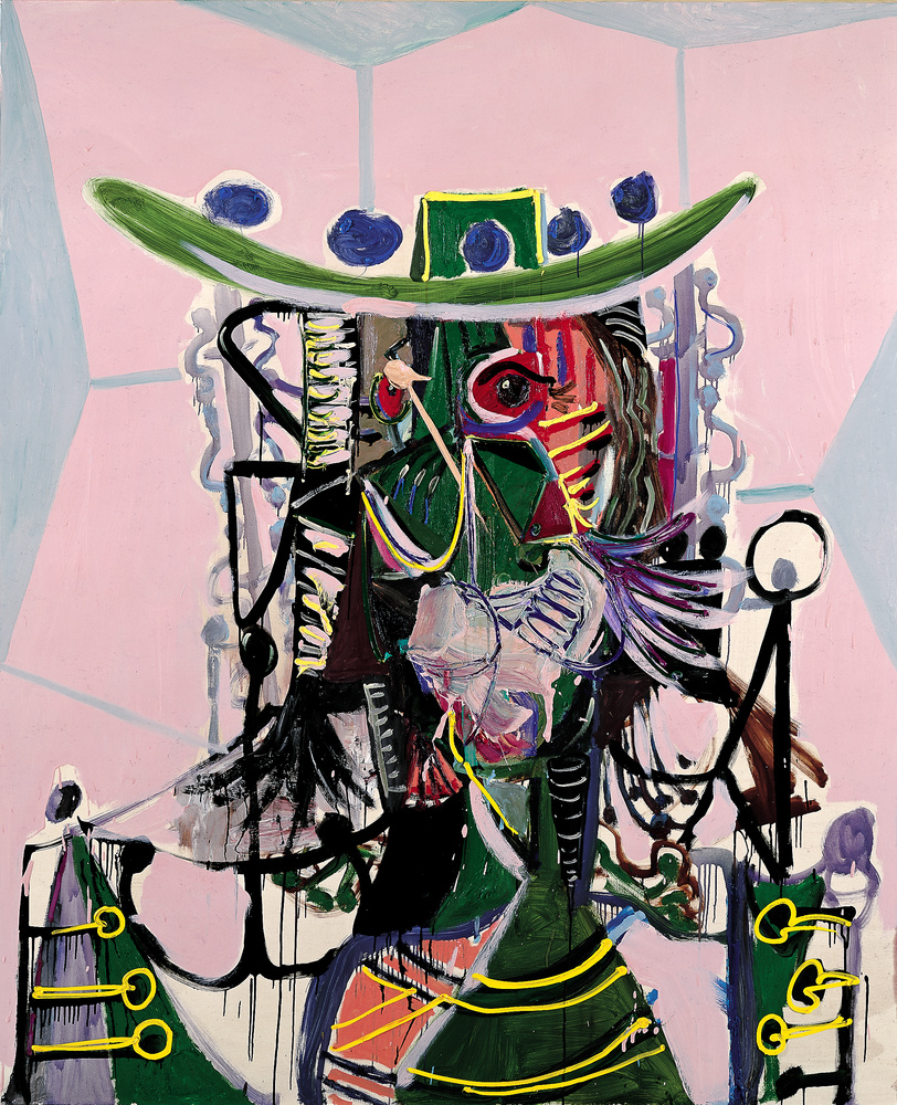 La première synthèse chez Condo vient de la citation omniprésente des figures qu’il vénère, Picasso en tête. Cela a pour effet une culture visuelle riche et foisonnante qu’il invoque systématiquement sans grand apport, comme Memories of a Picasso (1989, FRAC IDF), portrait dans la veine de ceux de Dora fin années 30, début 40, ou qu’il exploite pour le mélanger à des figures contemporaines dans la série des Fake Old Master.